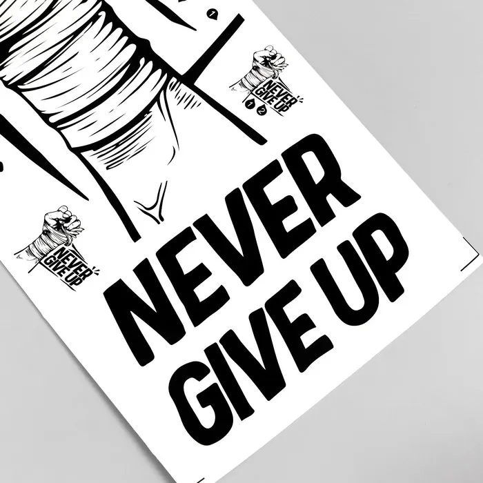 Наклейка пластик интерьерная чёрная "Кулак - никогда не сдавайся" 30х60 см — Характеристики