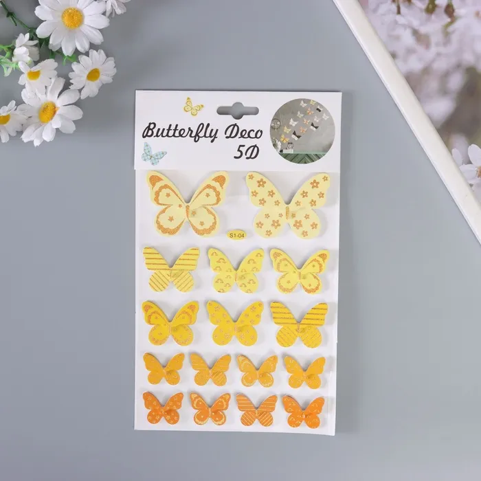 Наклейка интерьерная PVC "Рой бабочек" жёлтая 26х15,5 см