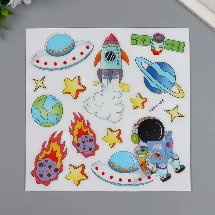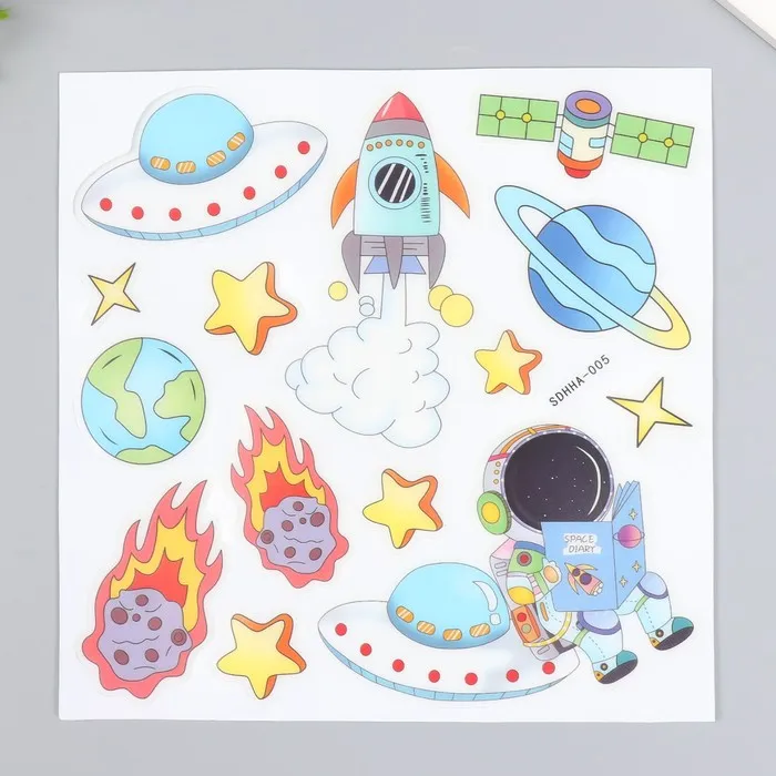 Наклейка пластик интерьерная фосфорная "Космонавты" МИКС 20х20 см — Характеристики