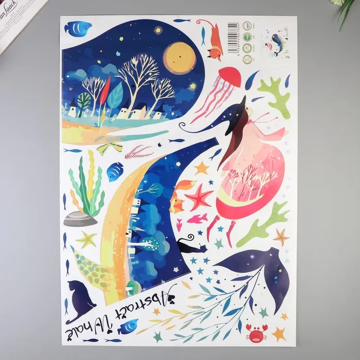 Наклейка пластик интерьерная "Кит и абстрация" 50х70 см — Характеристики