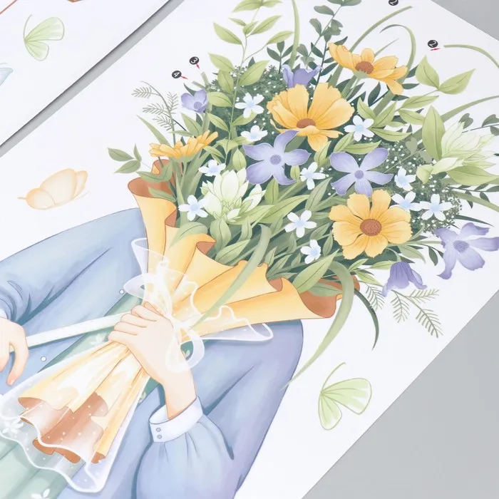Наклейка пластик интерьерная цветная "Девушка с полевыми цветами"набор 2 листа 30х85 см — Характеристики