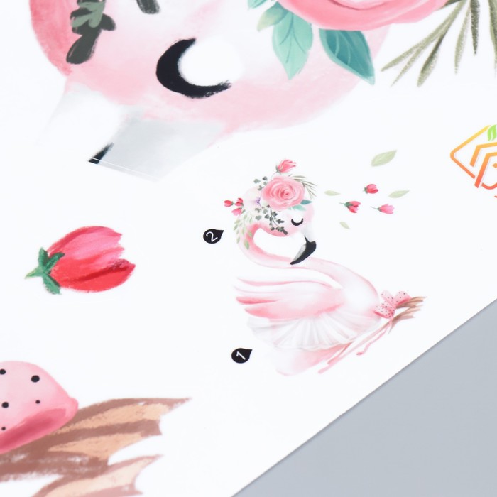 Наклейка пластик интерьерная цветная "Фламинго в балетной пачке с цветами" 30х60 см — Характеристики