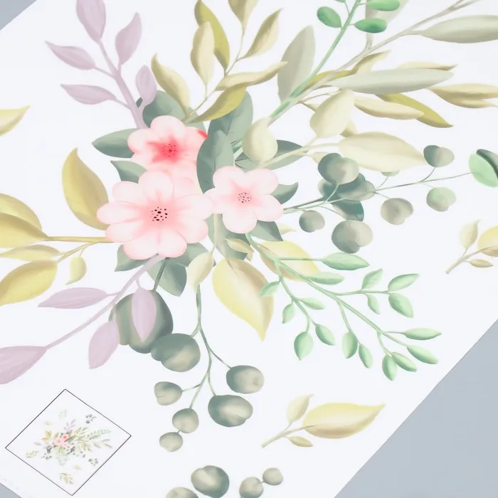 Наклейка пластик интерьерная цветная "Композиция зелень с розовыми цветами" 30х45 см — Характеристики