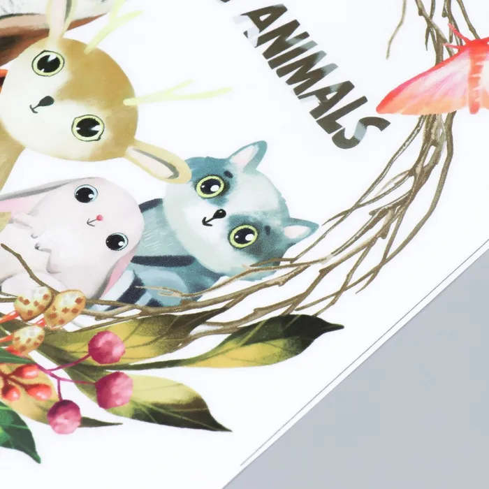 Наклейка пластик интерьерная цветная "Лесные зверята и совёнок в веночке" 30х30 см — Характеристики