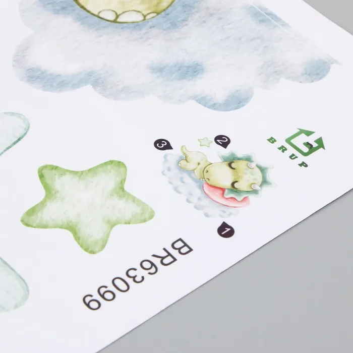Наклейка пластик интерьерная цветная "Малыш-трицератопс на облаке" 30х60 см — Характеристики