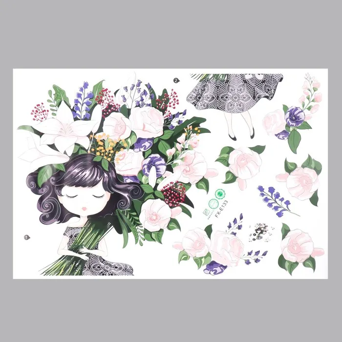 Наклейка пластик интерьерная цветная "Малышка с огромным букетом" 40х60 см — Характеристики