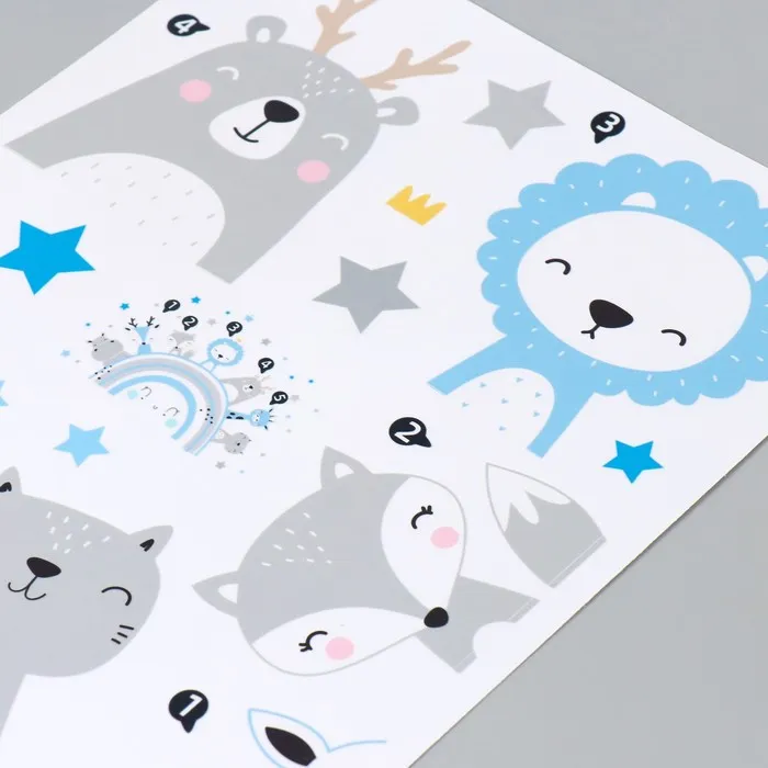 Наклейка пластик интерьерная цветная "Милые зверята на радуге" серо-голубой 30х90 см — Характеристики