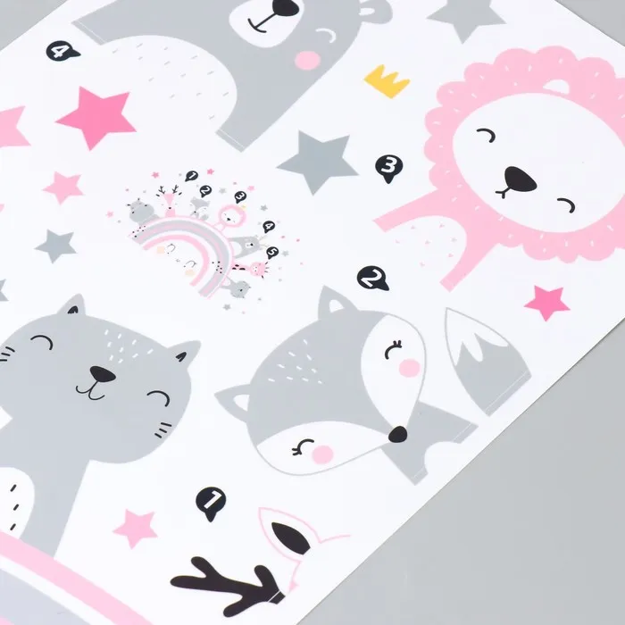 Наклейка пластик интерьерная цветная "Милые зверята на радуге" серо-розовый 30х90 см — Характеристики
