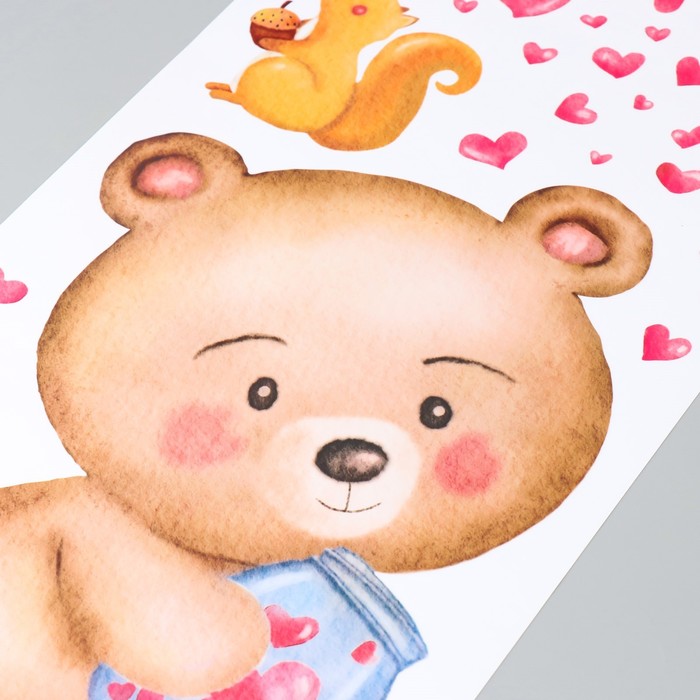 Наклейка пластик интерьерная цветная "Мишка и белочка, с баночкой с сердцами" 30х60 см — Характеристики