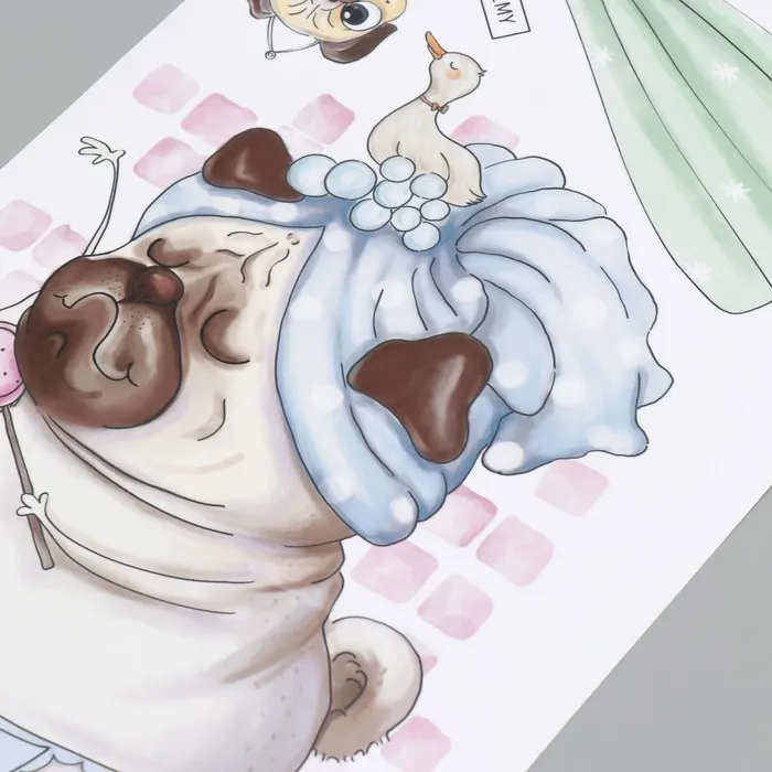 Наклейка пластик интерьерная цветная "Мопс в душе" 30х90 см — Характеристики