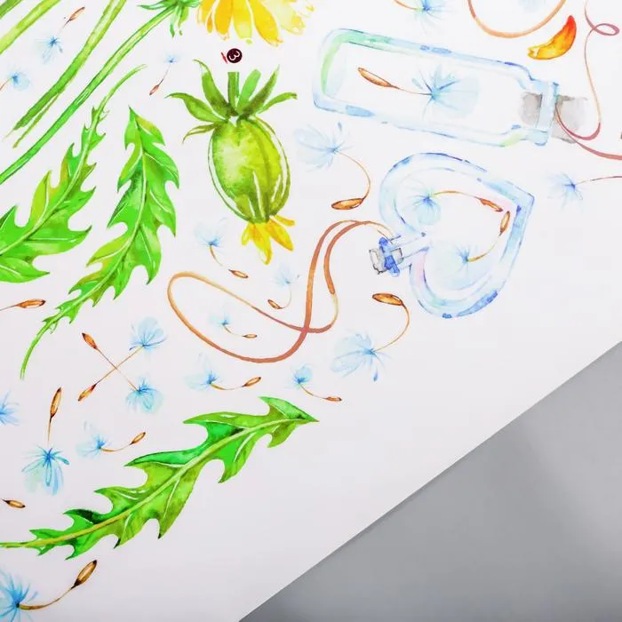 Наклейка пластик интерьерная цветная "Одуванчики и бутылочки" 50х70 см — Характеристики
