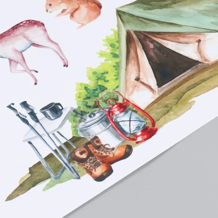 Наклейка пластик интерьерная цветная "Палатка в лесу со зверятами" 30х90 см — Характеристики