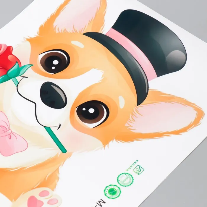 Наклейка пластик интерьерная цветная "Пёсик в цилиндре с розой" 24х29 см — Характеристики