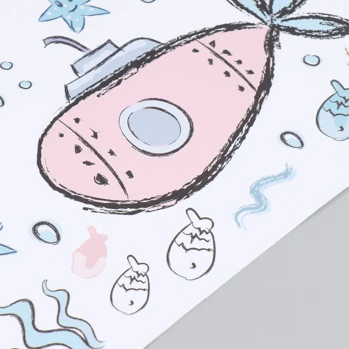 Наклейка пластик интерьерная цветная "Подводная лодка и морские жители" 30х90 см — Характеристики
