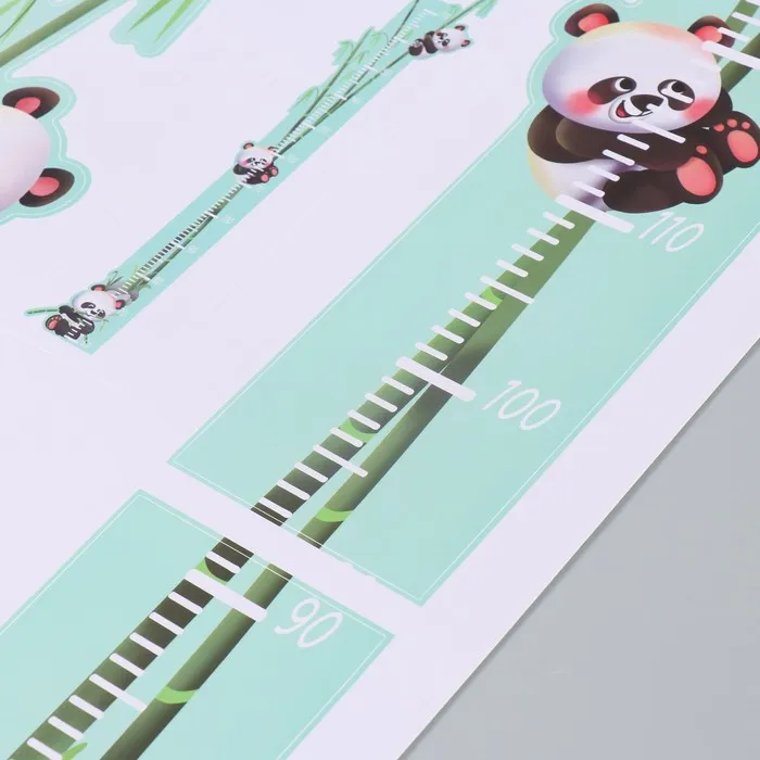 Наклейка пластик интерьерная цветная ростомер "Панды на бамбуке" 50x70 см — Характеристики