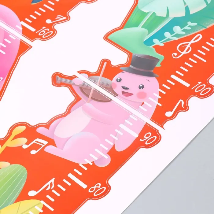 Наклейка пластик интерьерная цветная ростомер "Розовый фламинго и зайчик" 50x70 см — Характеристики