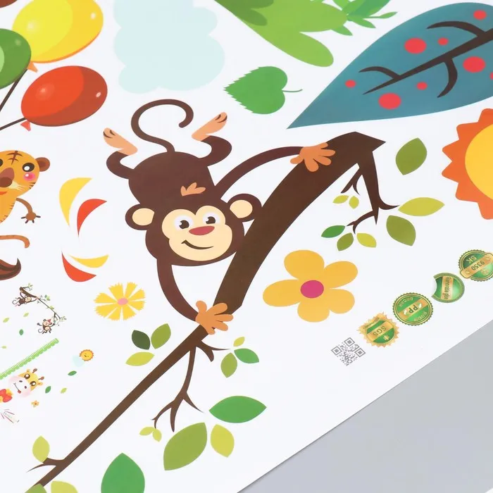 Наклейка пластик интерьерная цветная ростомер "Жираф и мартышки" 60х90 см — Характеристики