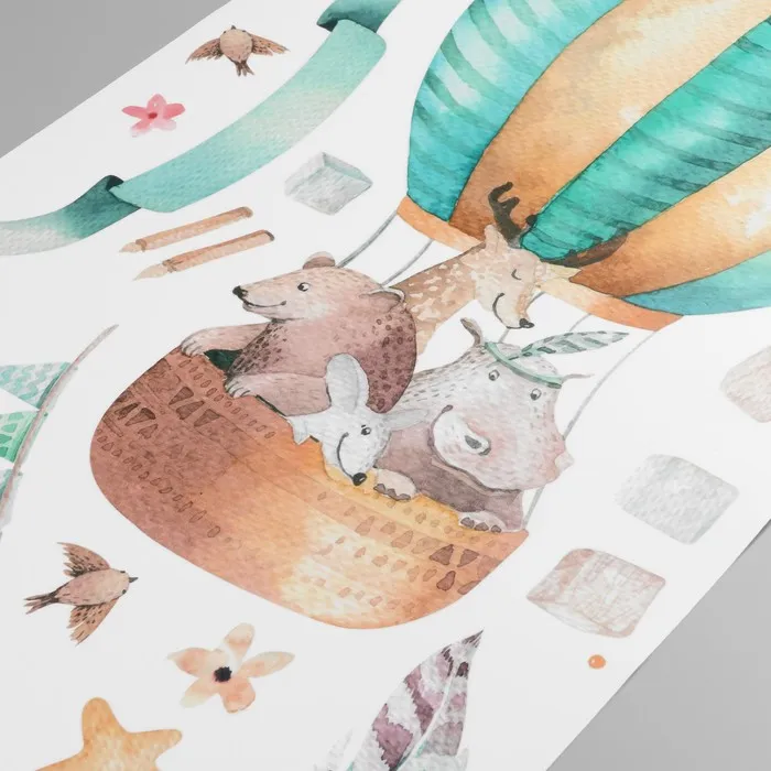 Наклейка пластик интерьерная цветная "Звери на воздушном шаре" 30х90 см — Характеристики