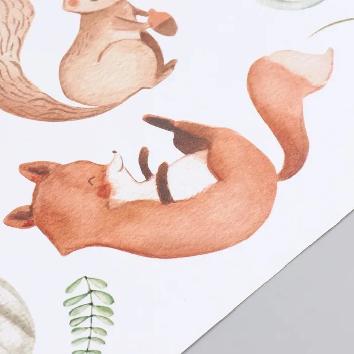 Наклейка пластик интерьерная цветная "Зверята в осенний сезон" набор 2 листа 30х84 см — Характеристики