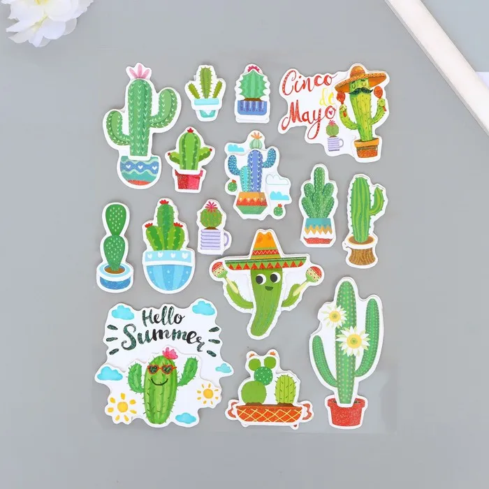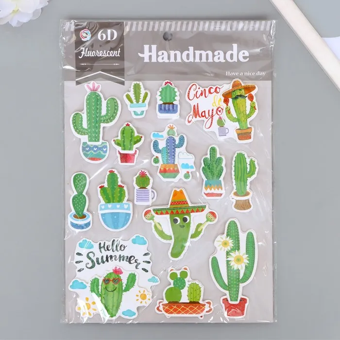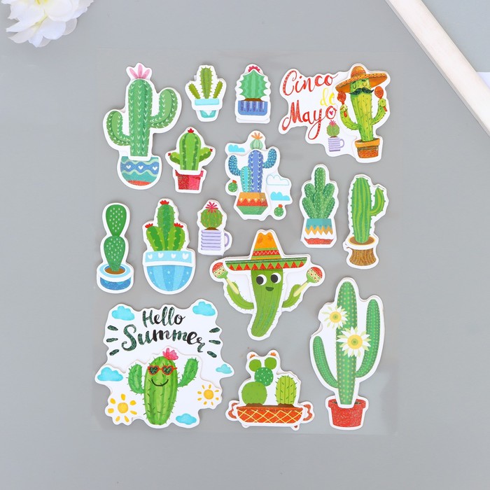 Наклейка пластик, картон 6D с блёстками "Весёлый кактус" 25,5х17,5 см — Характеристики