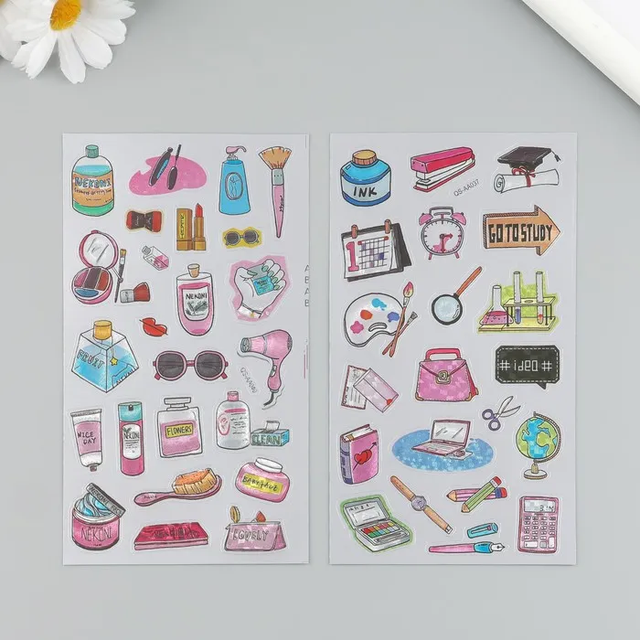 Наклейка пластик "Косметика/Учебный процесс" МИКС 9,5х17,5 см — Характеристики