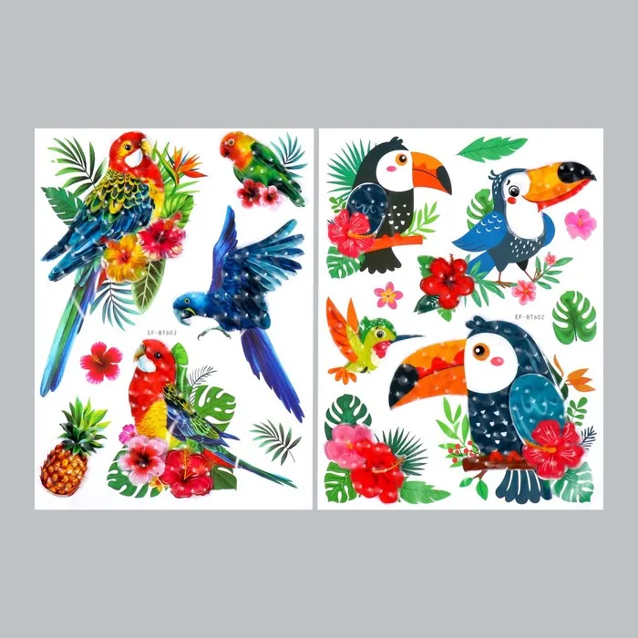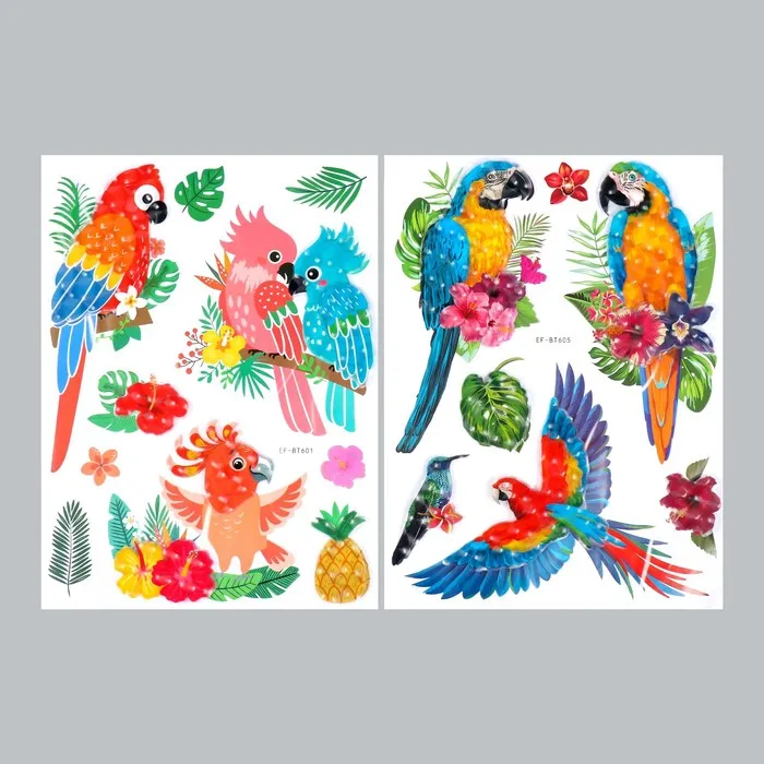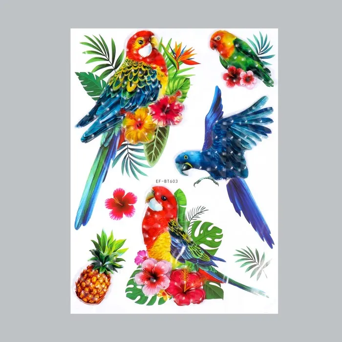 Наклейка пластик многослойная "Тропические птицы" МИКС 50х30 см — Характеристики