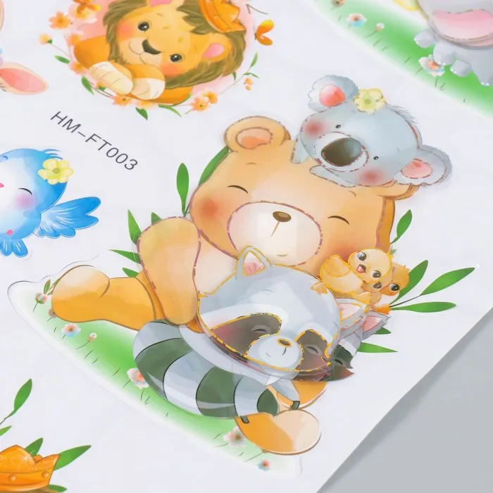 Наклейка пластик многослойная "Зверята и транспорт" 50х35 см — Характеристики