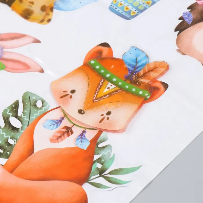 Наклейка пластик многослойная "Зверята индейцы" 50х35 см — Характеристики