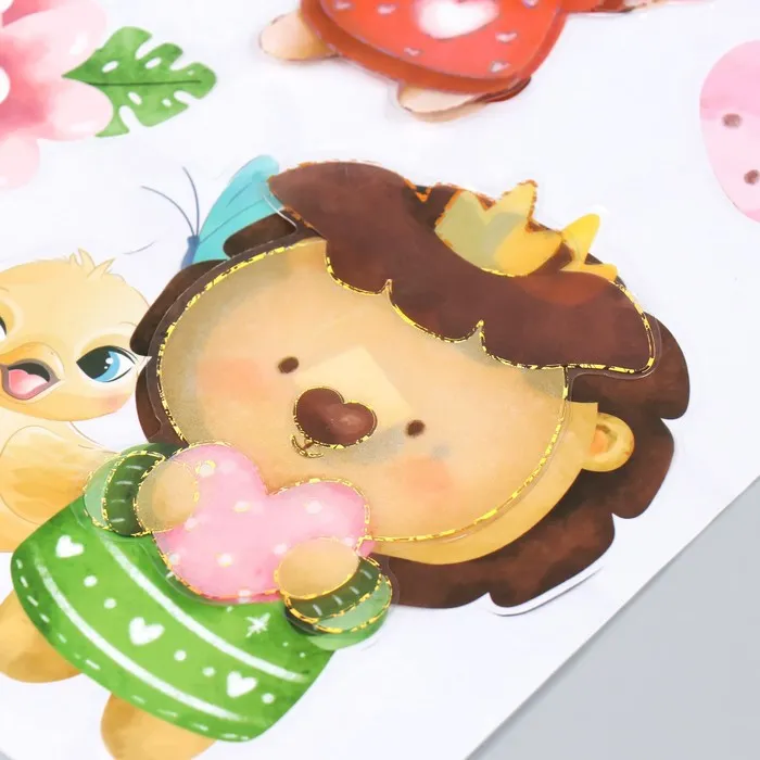 Наклейка пластик многослойная "Зверята с сердечками" 50х35 см — Характеристики