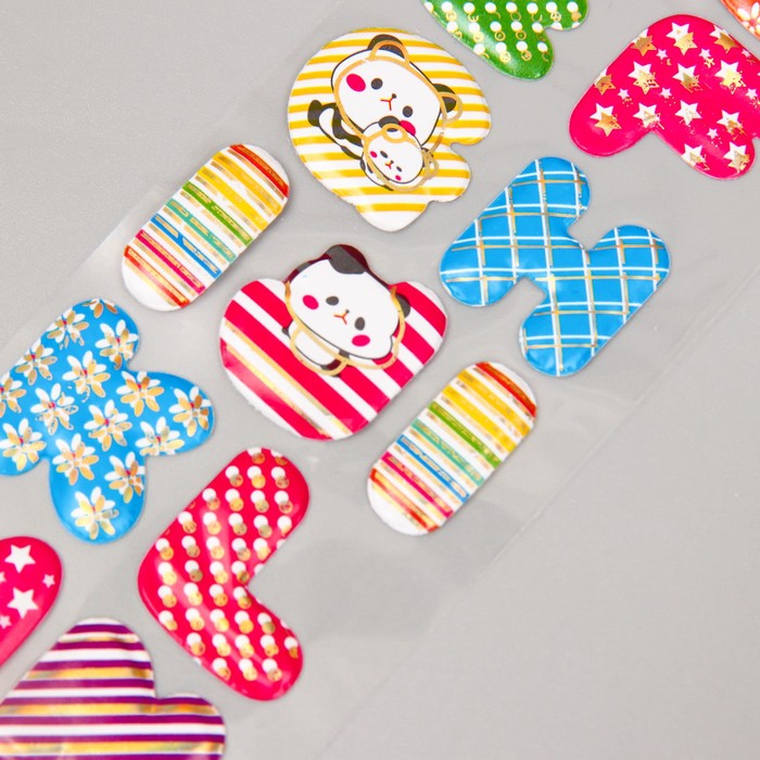 Наклейка пластик объёмные "Весёлые цифры/буквы" с золотой обводкой МИКС 33,5х6 см — Характеристики
