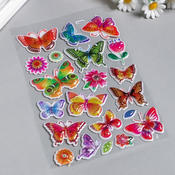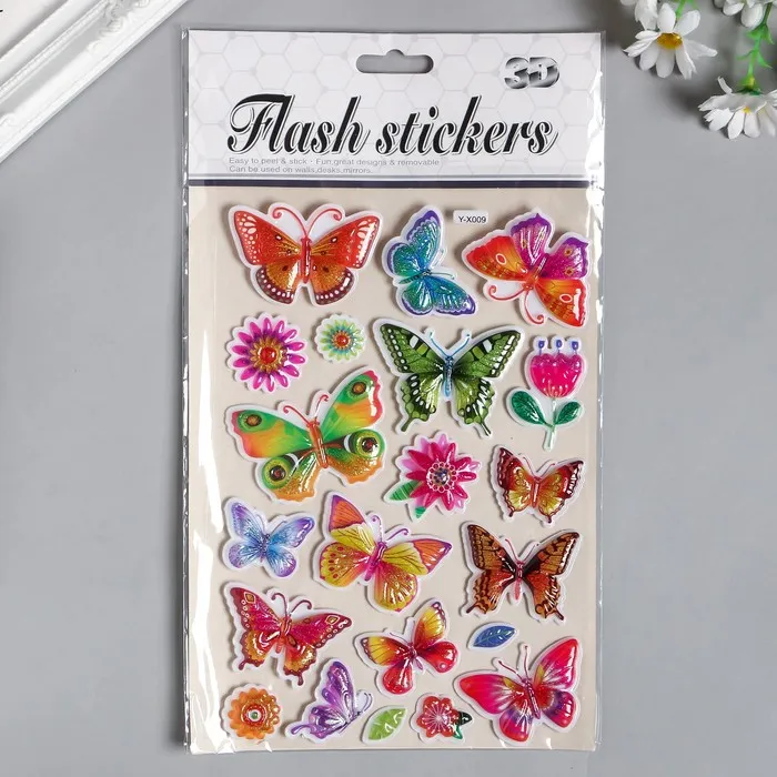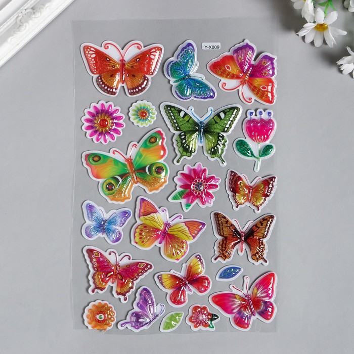 Наклейка пластик с блёстками выпуклая "Бабочки" 29х16 см — Характеристики