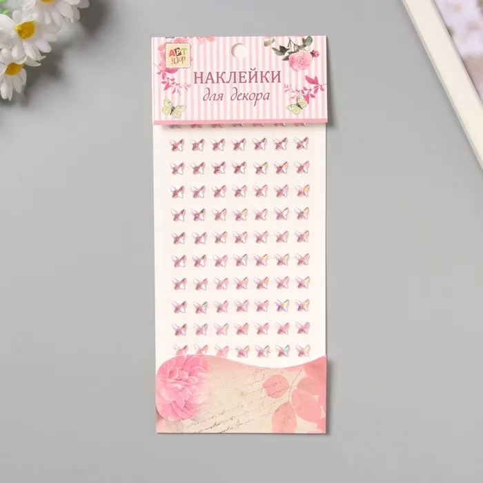 Наклейка пластик стразы "Бабочки" розовая 15х9 см — Характеристики