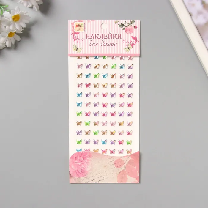Наклейка пластик стразы "Бабочки" цветная 15х9 см — Характеристики