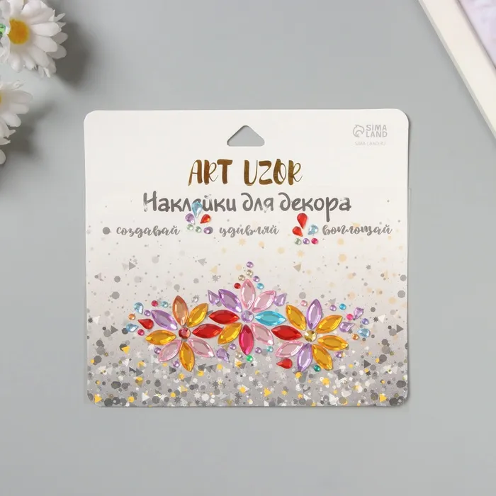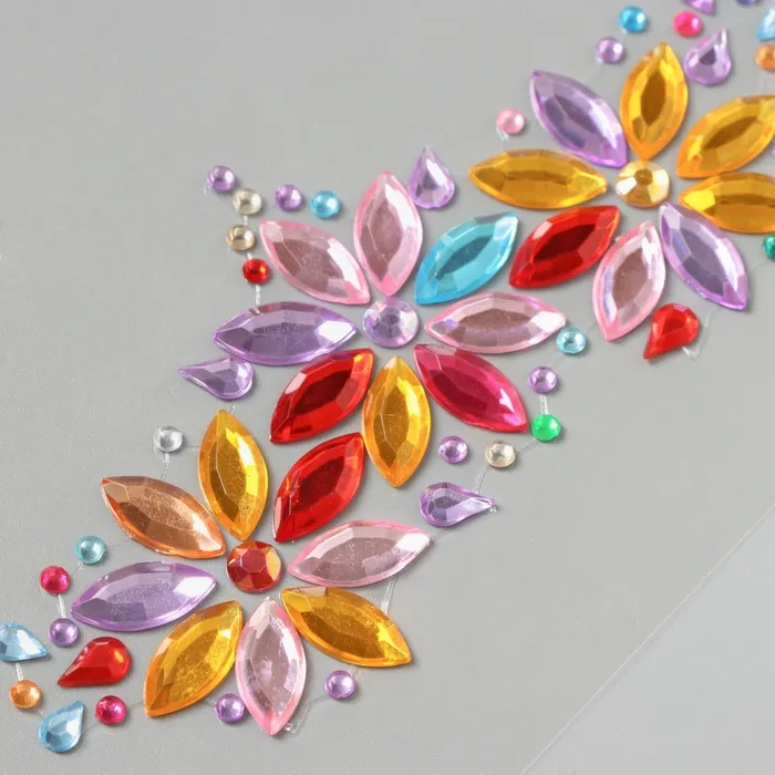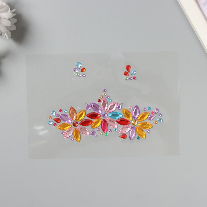 Наклейка пластик стразы на лицо "Три цветка" разноцветная 14,5х16 см — Характеристики