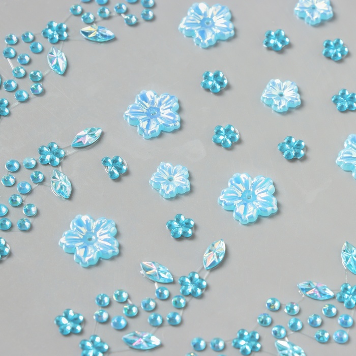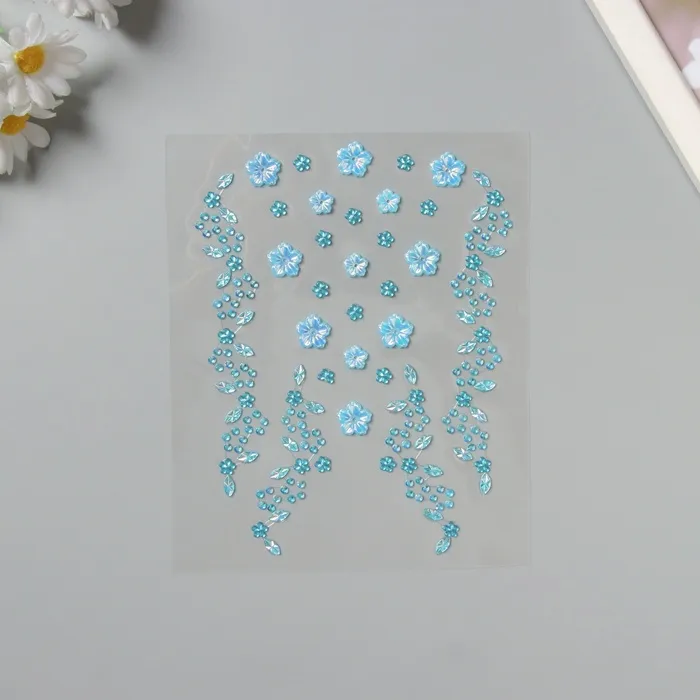 Наклейка пластик стразы на волосы "Нежные голубые цветы" 21х15,5 см — Характеристики