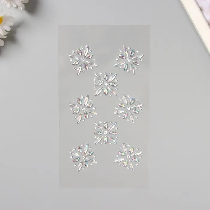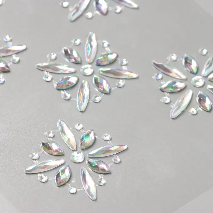 Наклейка пластик стразы на волосы "Цветочная россыпь" серебро 25х13 см — Характеристики