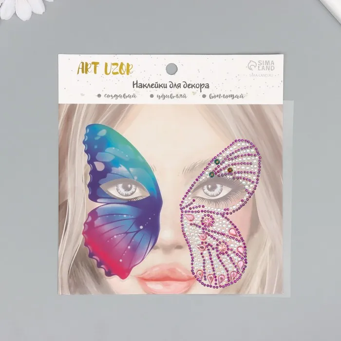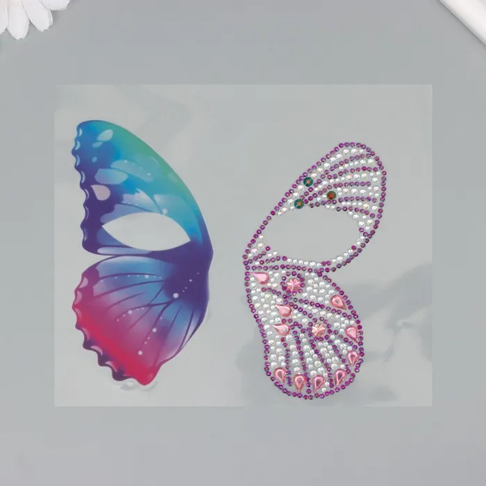 Наклейка пластик стразы "Пара крыльев розовой бабочки" 16х17 см — Характеристики