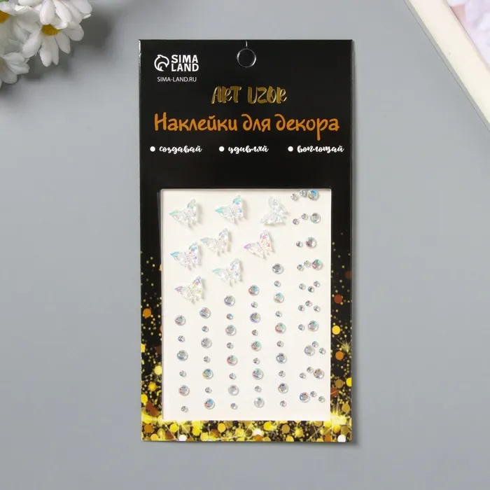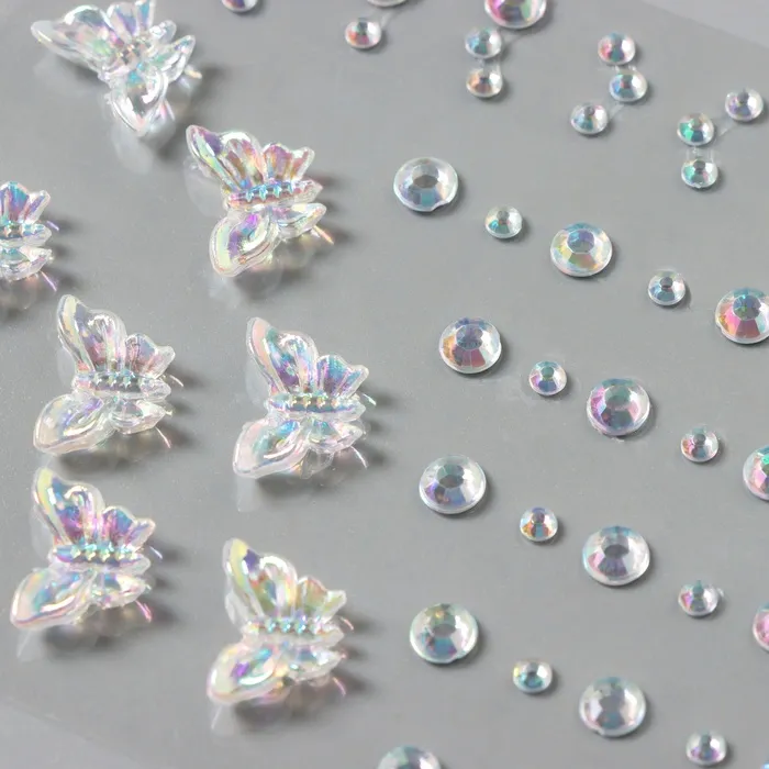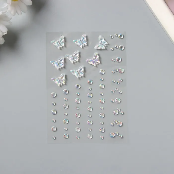 Наклейка пластик стразы "Полёт бабочки" белая 11х7,8 см — Характеристики
