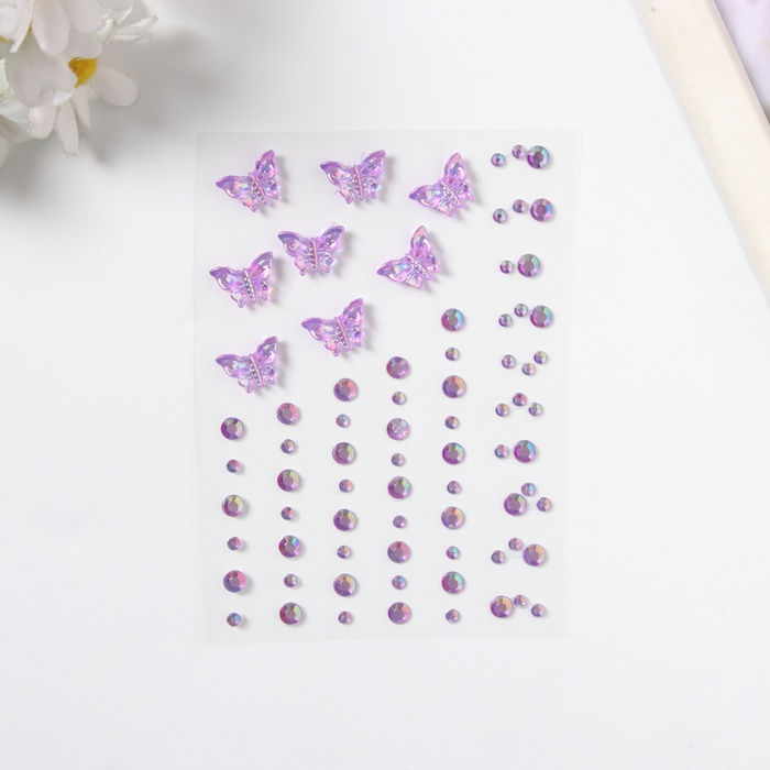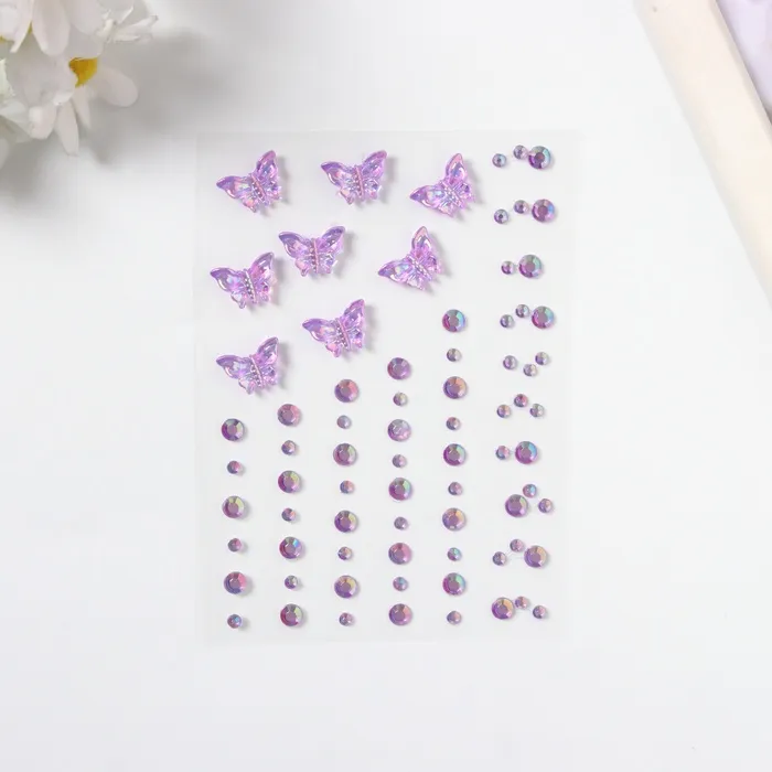 Наклейка пластик стразы "Полёт бабочки" фиолетовая 11х7,8 см — Характеристики