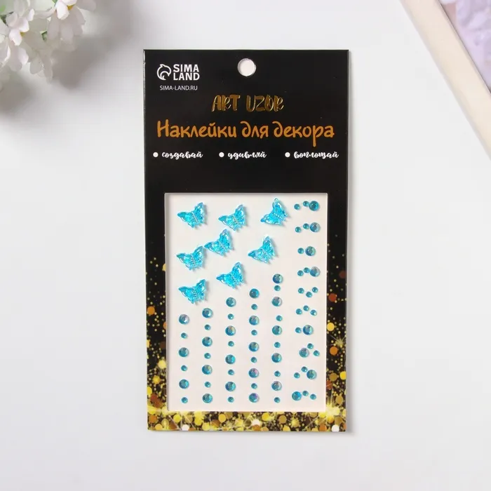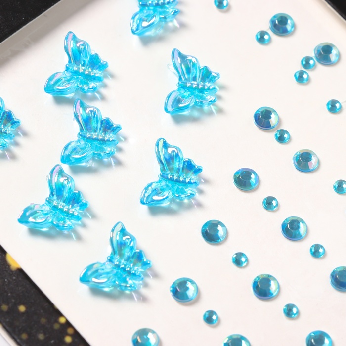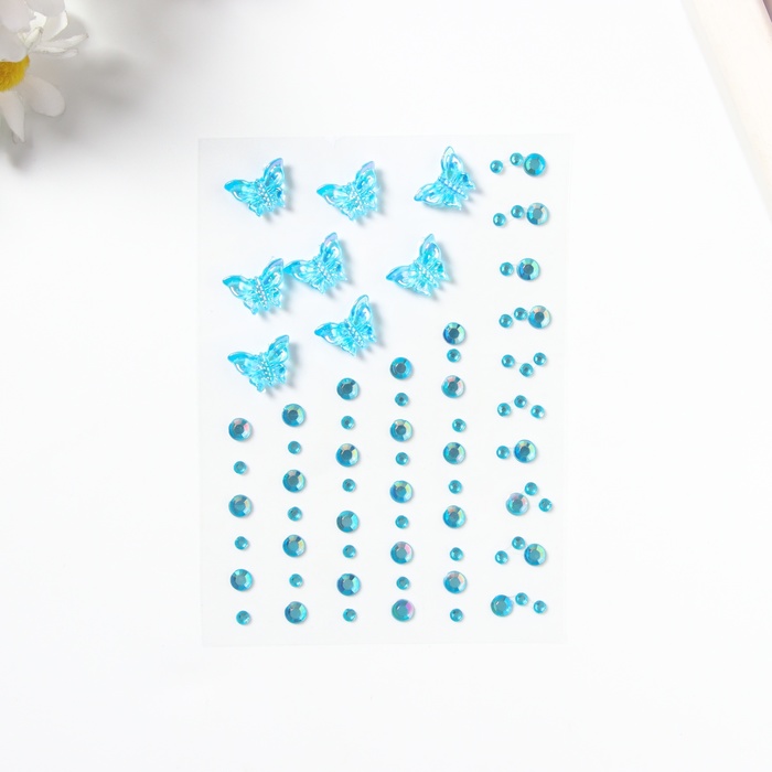Наклейка пластик стразы "Полёт бабочки" голубая 11х7,8 см — Характеристики