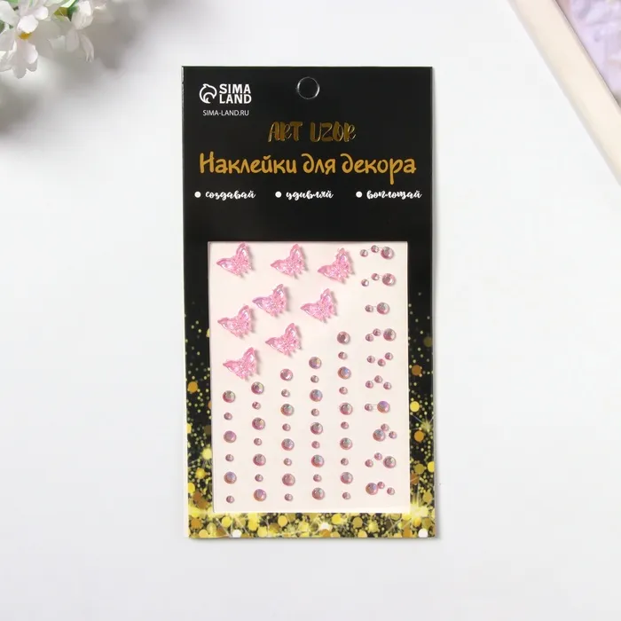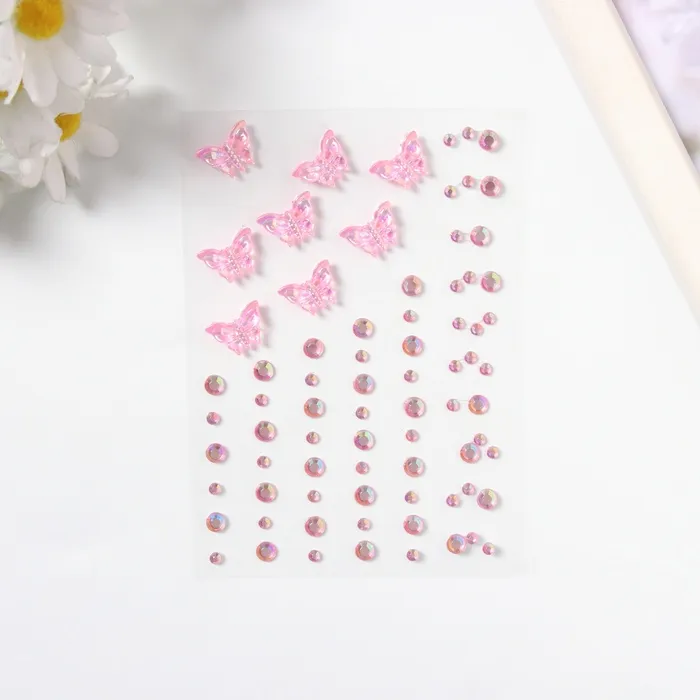 Наклейка пластик стразы "Полёт бабочки" розовая 11х7,8 см — Характеристики