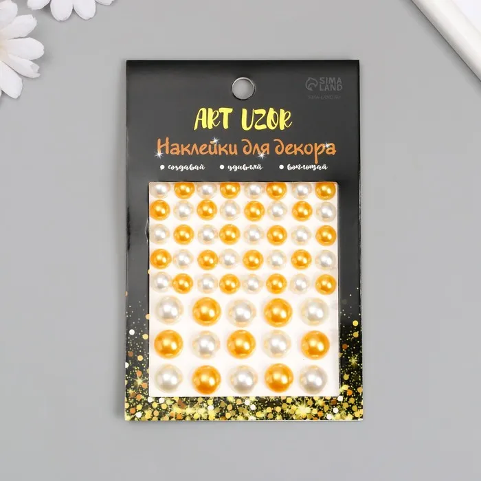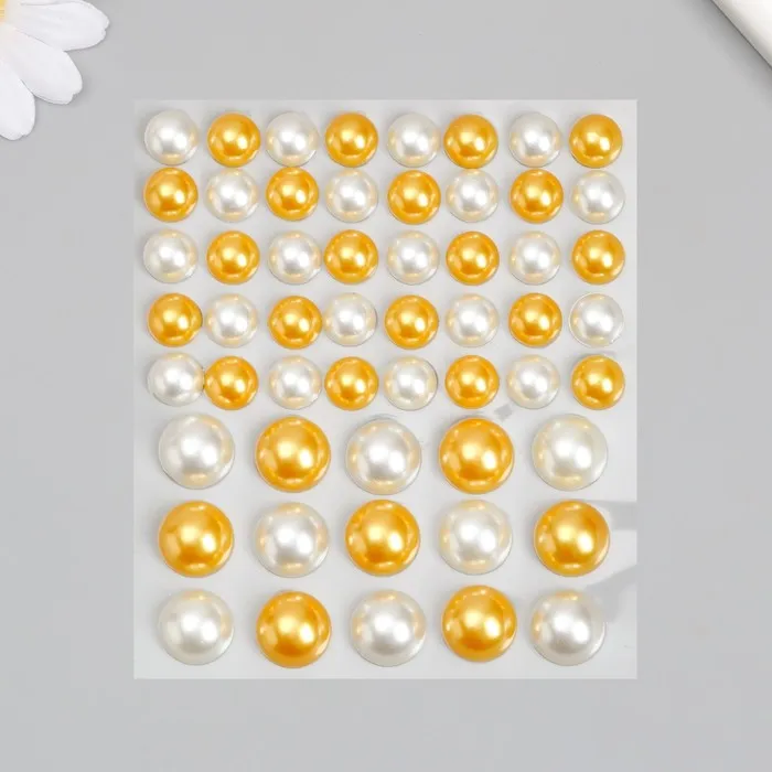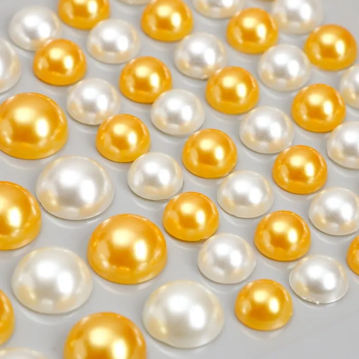 Наклейка пластик стразы "Полужемчужины разных размеров" белые и оранжевые9,5х11 см — Характеристики