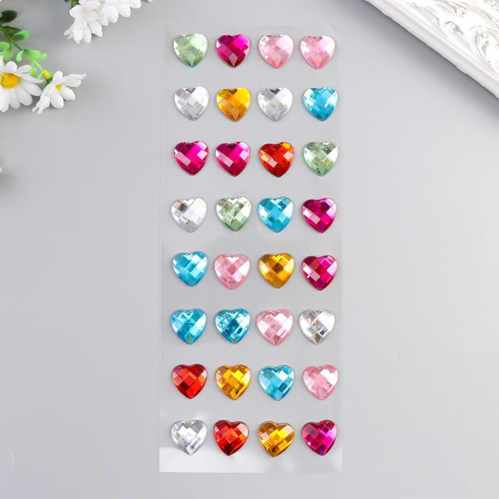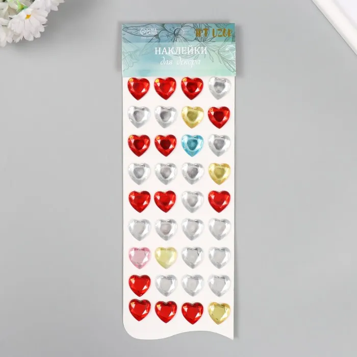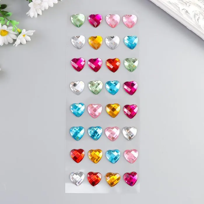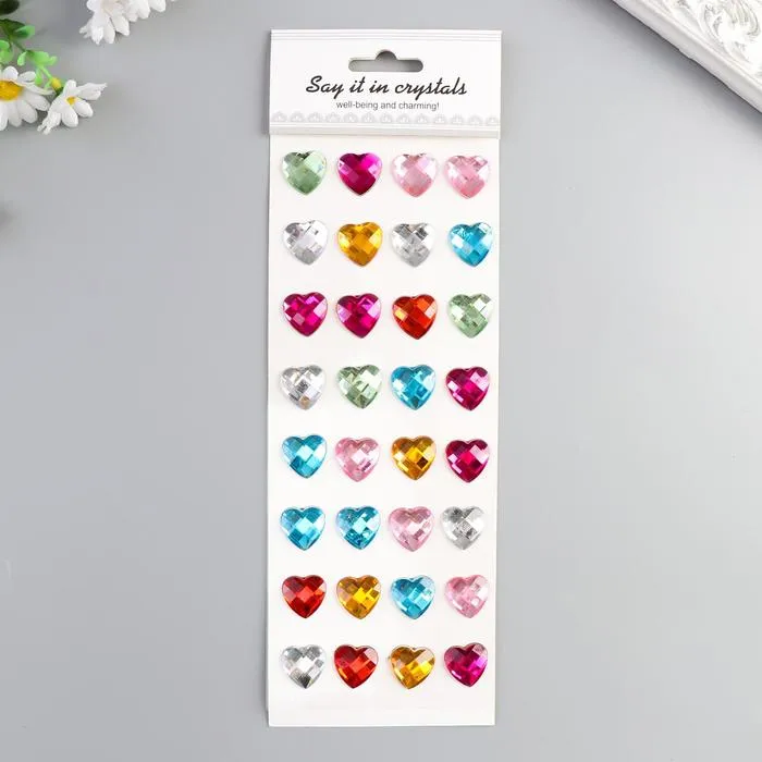 Наклейка пластик стразы "Сердечки разноцветные кристаллы" МИКС 32х10,5 см — Характеристики