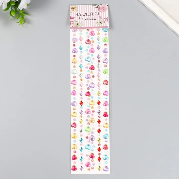 Наклейка пластик стразы "Сердца и геометрия" МИКС 7х30 см — Характеристики