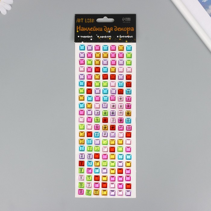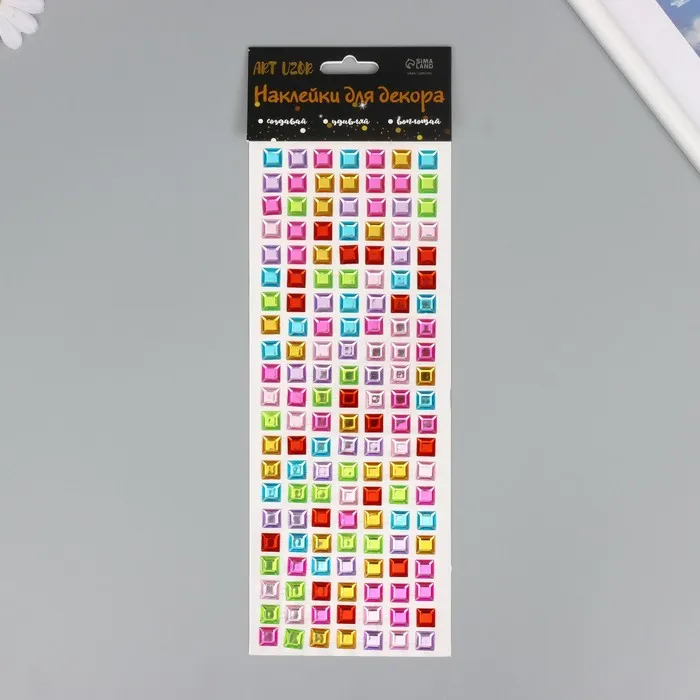 Гламур, стразы, глянец – сегодня это именно те понятия, которые охватили целый мир. И, конечно же, даже в творчестве им выделено огромное место. Наклейка пластик "Стразы цветные, квадрат" МИКС d-1,2 см 11х32 см отлично подойдет для творческих личностей и любителей помастерить своими руками. Эти изделия часто используют в скрапбукинге, при создании собственных поздравительных открыток, в украшении подарков, предметов интерьера и прочего. С их помощью можно «обклеить» телефон, блокнот или же рабочий монитор, чтобы было веселей и элегантней. Эти милые наклейки будут дополнять что угодно, переливающийся в лучах солнца блеск никогда не повредит!