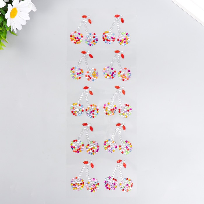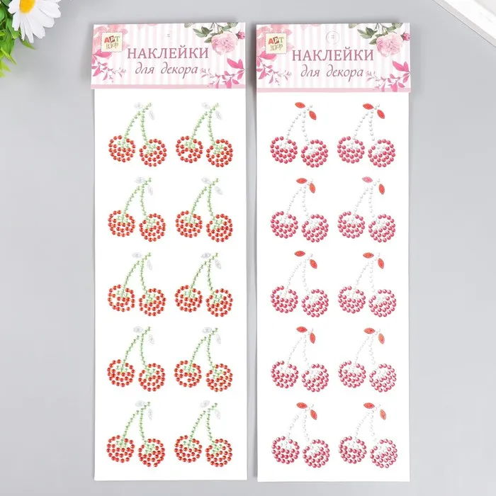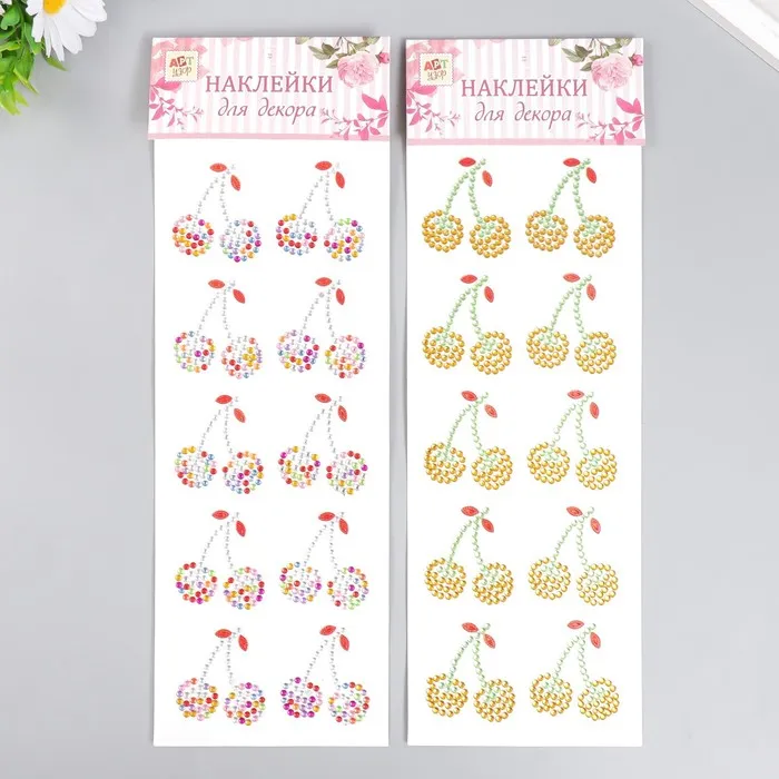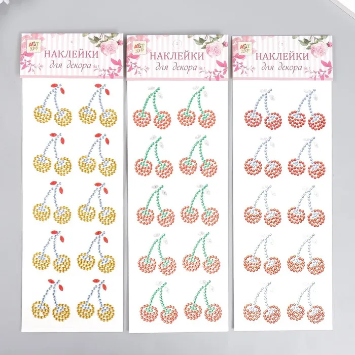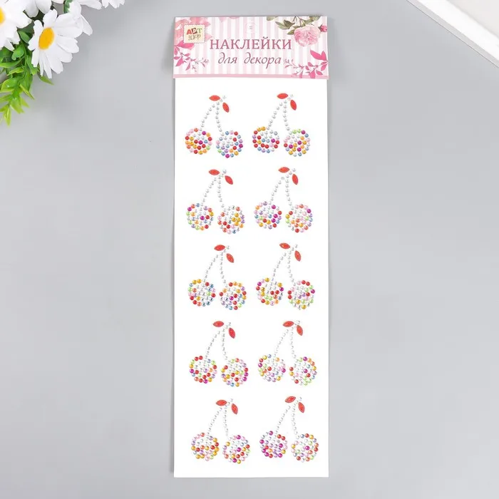 Наклейка пластик стразы "Вишенки" МИКС 32х10,5 см — Характеристики