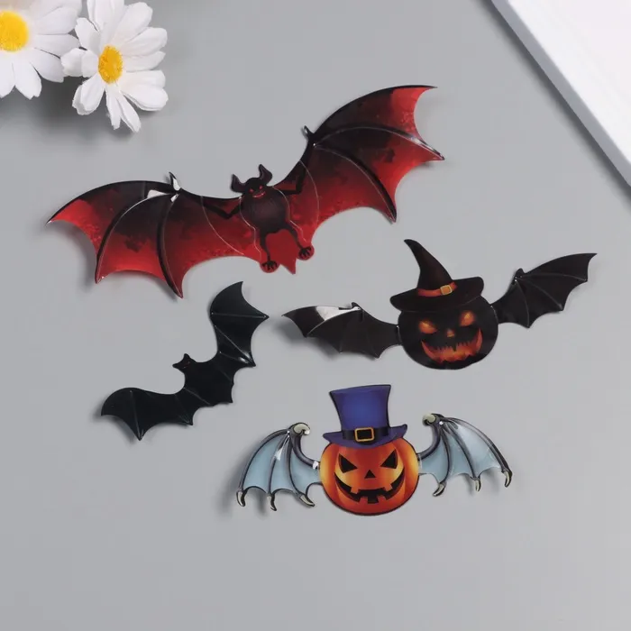 Наклейка пластик "Тыквы и летучие мыши" набор 12 шт — Характеристики