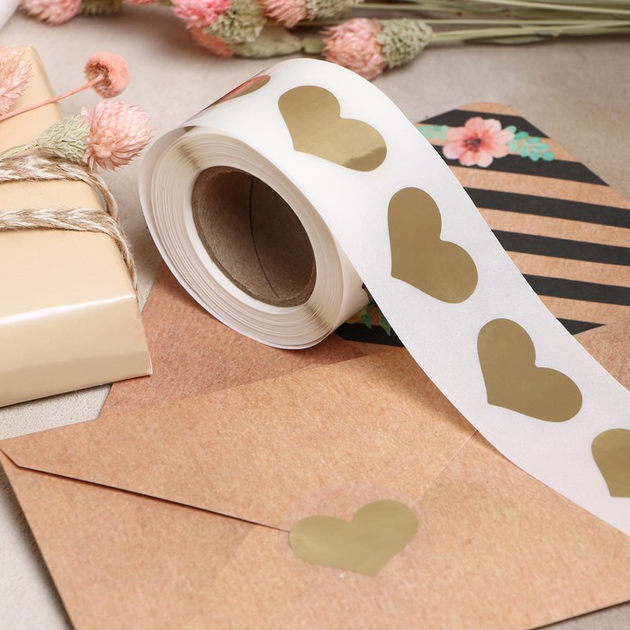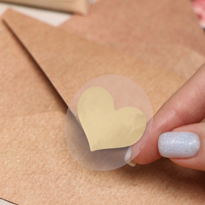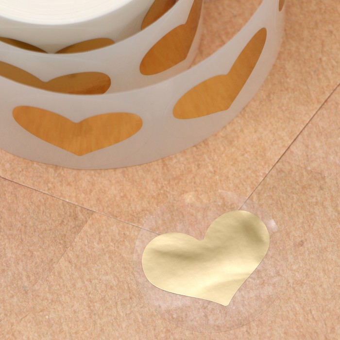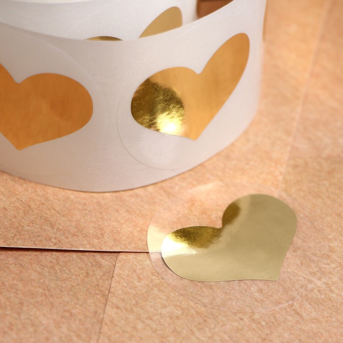 Наклейка прозрачная с тиснением «Сердца», золотая, 300 шт. 3.8×3.8 см — Характеристики