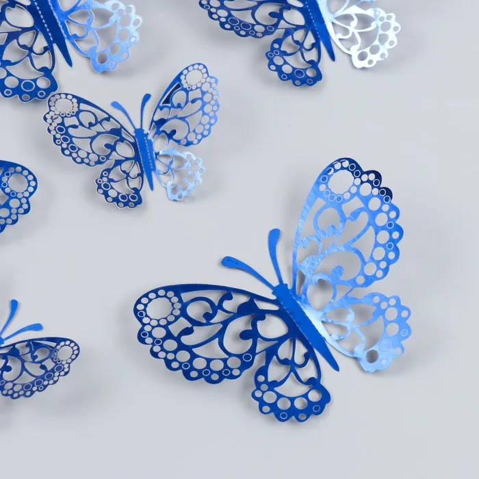 Наклейка PVC "Бабочки ажур, ярко-синий" набор 12 шт 12 см, 10 см 8 см