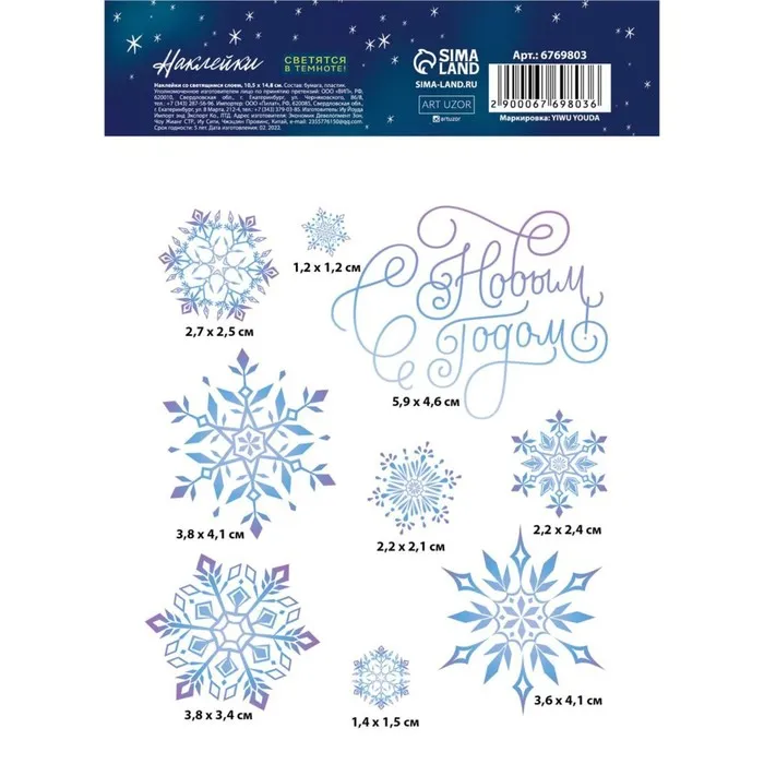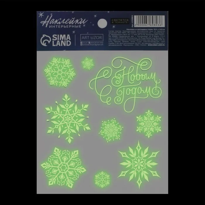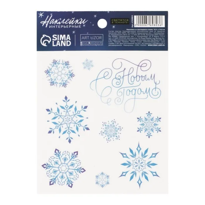 Наклейка со светящимся слоем «Снежинки», 10,5 х 14,8 см — Характеристики